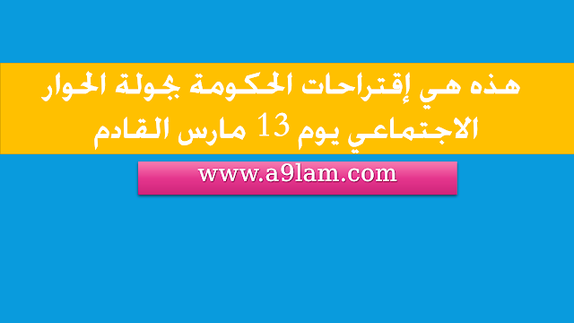 إقتراحات الحكومة بجولة الحوار الاجتماعي يوم 13 مارس القادم
