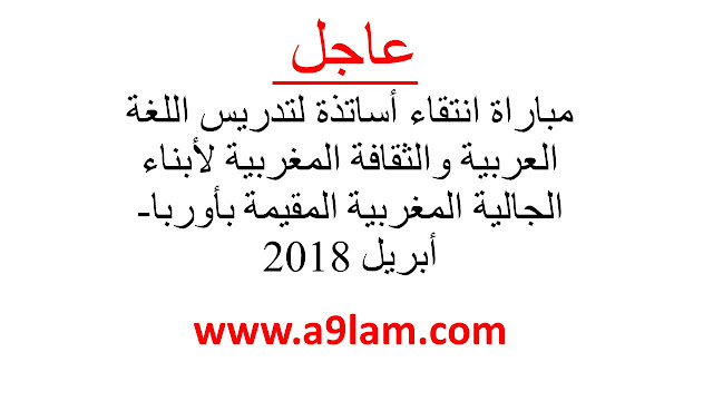 Home » مباراة تدريس اللغة العربية والثقافة المغربية لأبناء الجالية المغربية المقيمة بأوربا-أبريل 2018مباراة تدريس اللغة العربية والثقافة المغربية لأبناء الجالية المغربية المقيمة بأوربا-أبريل 2018by Mohamed khan أصدرت وزارة التربية الوطنية والتكوين المهني و التعليم العالي و البحث العلمي مذكرة مباراة انتقاء أساتذة لتدريس اللغة العربية والثقافة المغربية لأبناء الجالية المغربية المقيمة بأوربا-أبريل 2018 فيما يلي رابط تحميل المذكرة معلومات مهمة حول التدريس بالخارج Advertisements previousفرض في مادة الرياضيات للمرحلة الثالثة المستوى السادس ابتدائي( للاستئناس)nextالحركة الادارية الخاصة بإسناد منصب مدير الدراسة بمؤسسات التعليم الثانوي