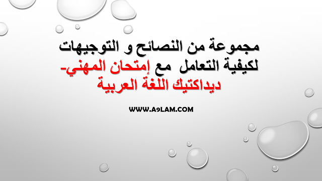 السلام عليكم اليوم نقدم لكم مجموعة من التوجيهات في إطار الاستعداد لامتحان المهني كل ما عليك هو زيارة موقعنا من أجل ان تعرف كل ما تحتاج و نقدم الشكر الخاص لكل من قام بجمع هذه التوجيهات و النصائح :