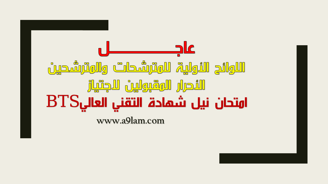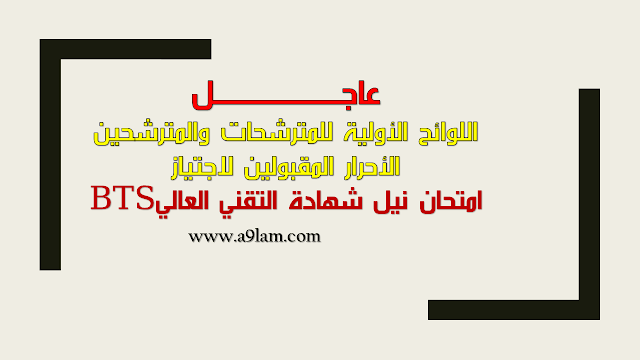 تنهي وزارة التربية الوطنية والتكوين المهني والتعليم العالي والبحث العلمي إلى علم كافة المترشحات والمترشحين الأحرار لامتحان نيل شهادة التقني العالي(BTS) دورة ماي 2018، أنه تم يومه الجمعة 23 مارس 2018 الإعلان عن اللوائح الأولية للمترشحات والمترشحين الأحرار المقبولين لاجتياز امتحان هذه الدورة وذلك على البوابة الإلكترونية للوزارة: http://candidaturelibresbts.men.gov.ma/