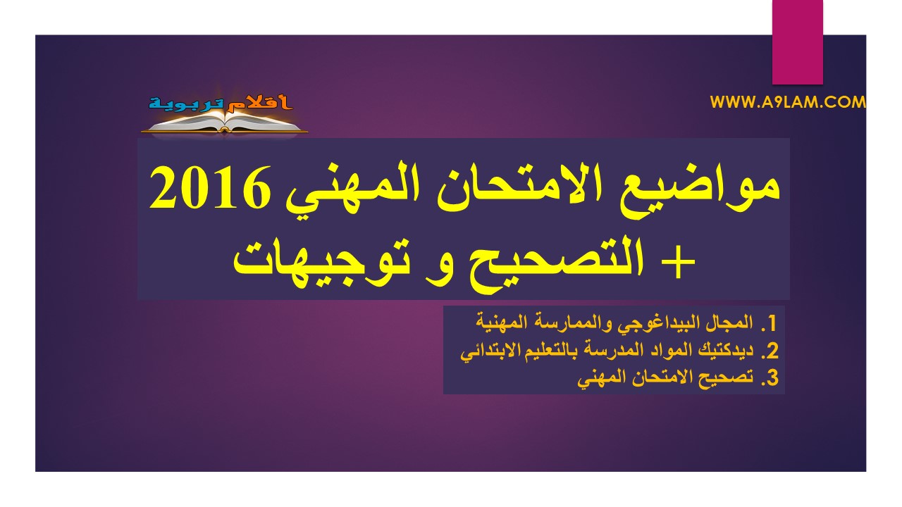 مواضيع الامتحان المهني 2016 + التصحيح و توجيهات