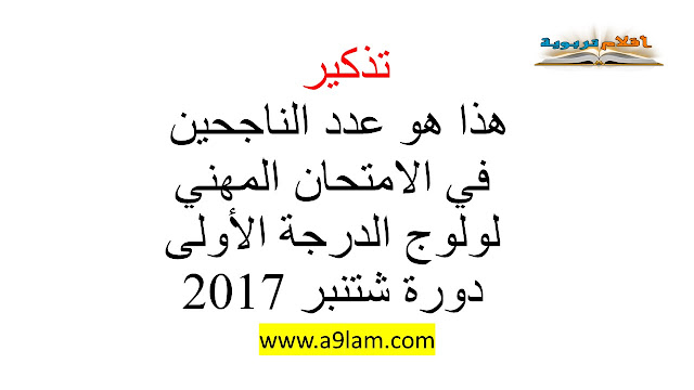 في أفق إعلان وزاراة التربية الوطنية و التكوين المهني والتعليم العالي و البحث العلمي عن نتائج الامتحان المهني الخاص بدورة شتنبر 2017. و التي نتمنى خلالها كل التوفيق للسادة الأساتذة.