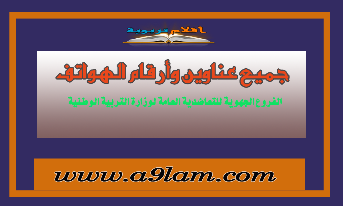 اليوم أقدم لكم عناوين و أرقام الهواتف الفروع الجهوية للتعاضدية العامة لوزارة التربية الوطنية لكل من يرغب زيارة أحدها
