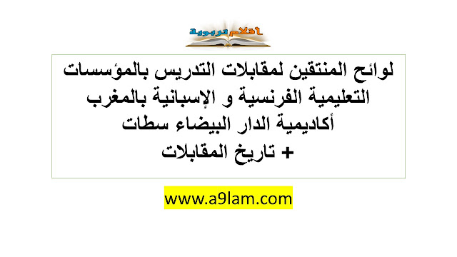 لوائح المنتقين لمقابلات التدريس بالمؤسسات التعليمية الفرنسية و الإسبانية بالمغرب أكاديمية الدار البيضاء سطات + تاريخ المقابلات