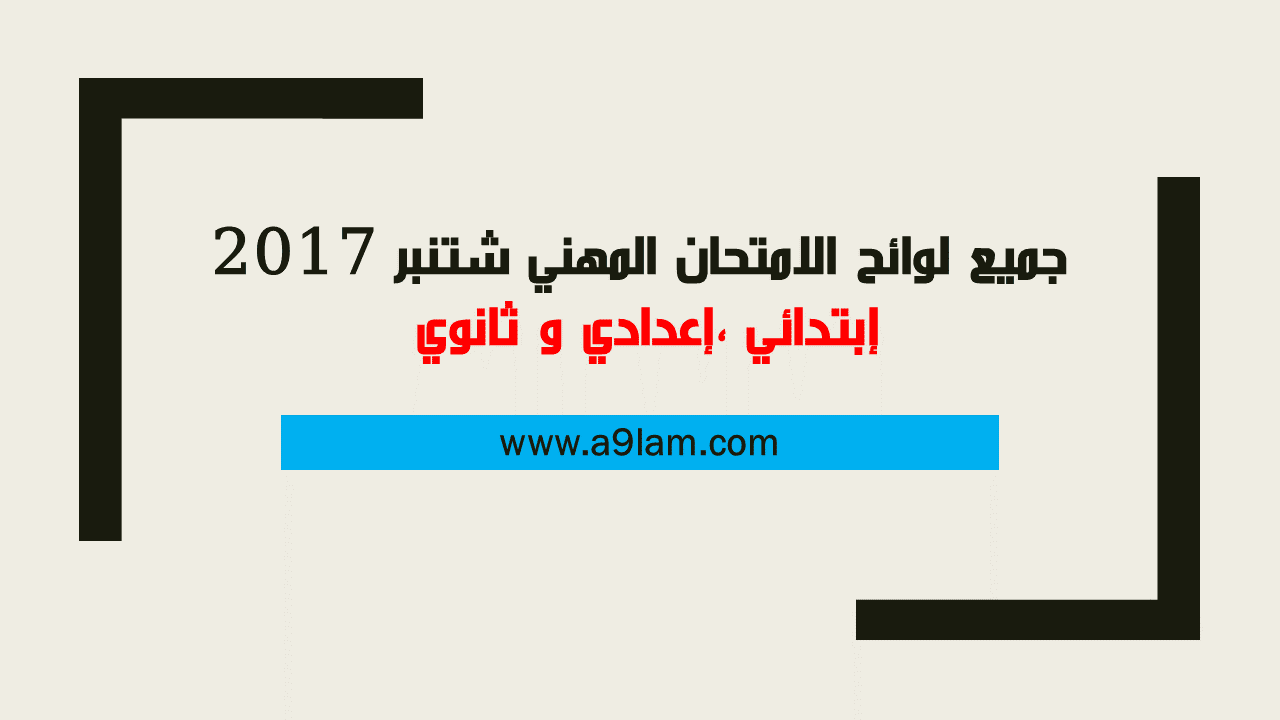 جميع لوائح الامتحان المهني شتنبر 2017 إبتدائي ،إعدادي و ثانوي