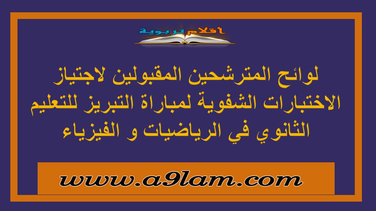 لوائح المترشحين المقبولين لاجتياز الاختبارات الشفوية لمباراة التبريز للتعليم الثانوي في الرياضيات و الفيزياء