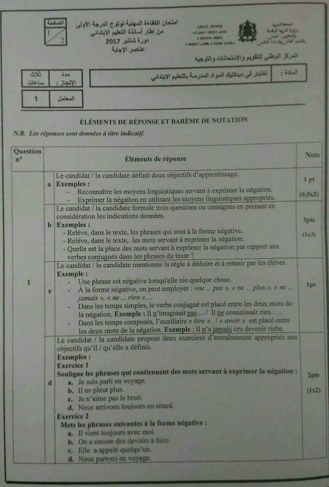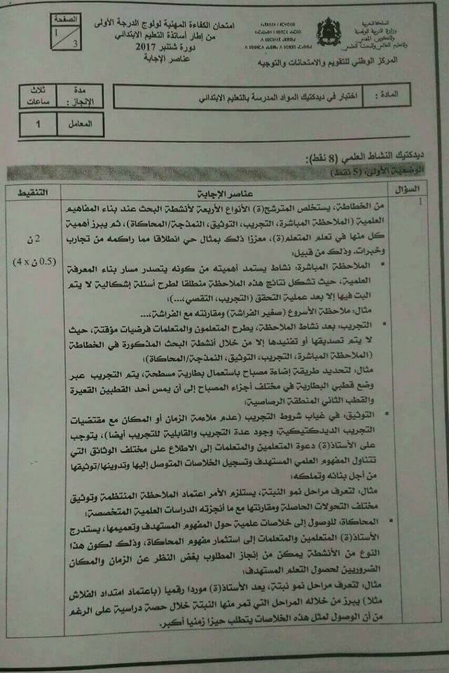 تصحيح امتحان الكفاءة المهنية -الدرجة الأولى- دورة -شتنبر 2017- ديداكتيك