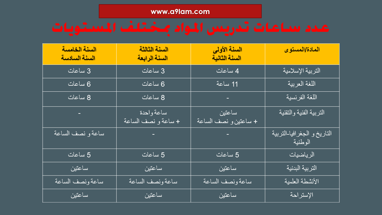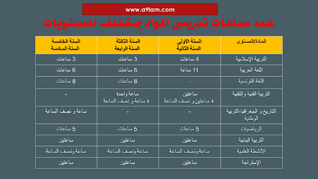 تم تجميع المواد الملقنة في الطور الإبتدائي في 8 وحدات ديداكتيكية: