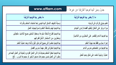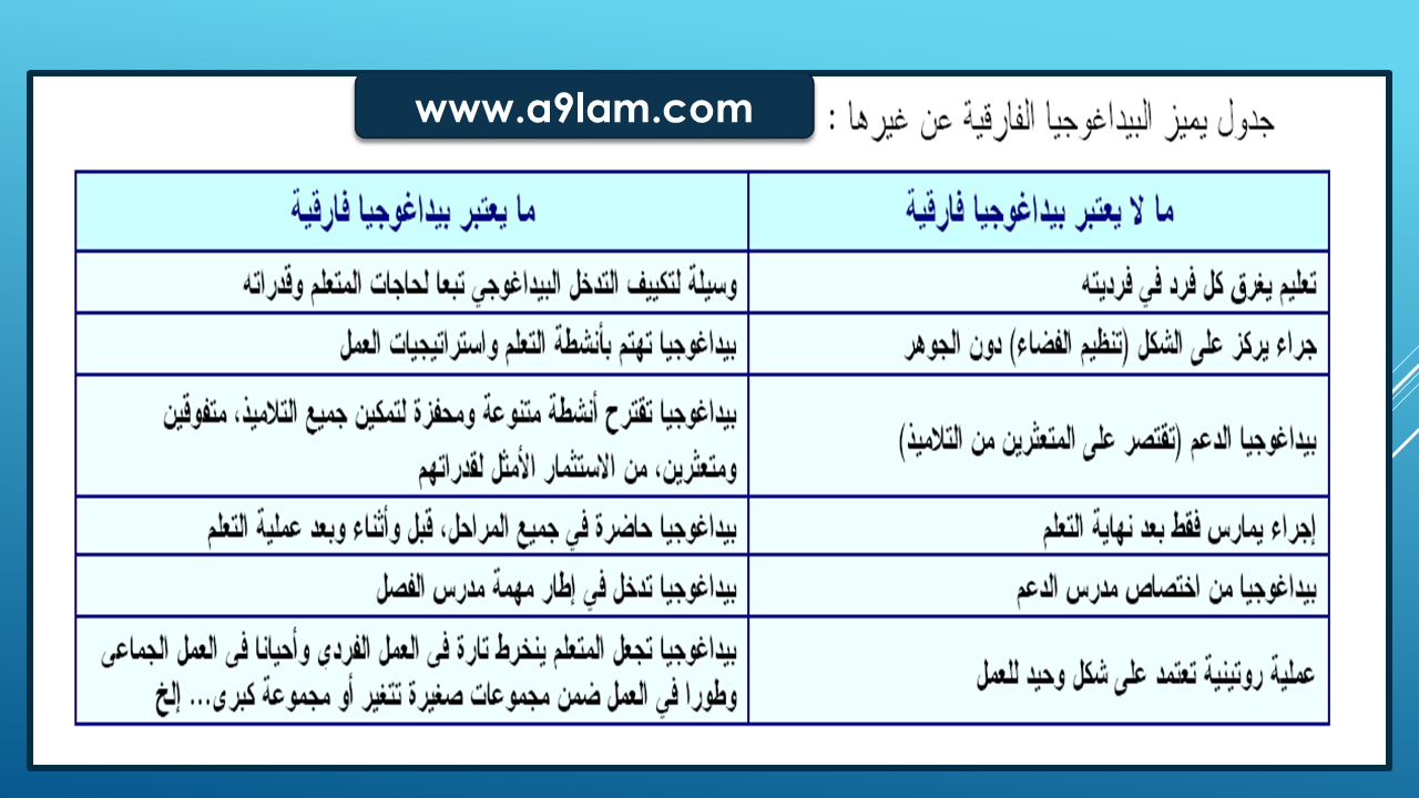 جدول يميز البيداغوجيا الفارقية عن غيرها :