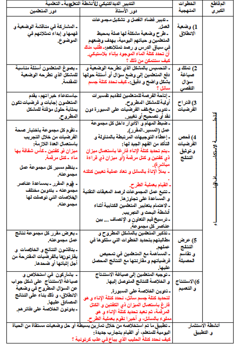 3) صيغة لاستثمار التجربة مع تحديد مهام الأستاذ(ة) و المتعلمين: (الوثيقة 1)