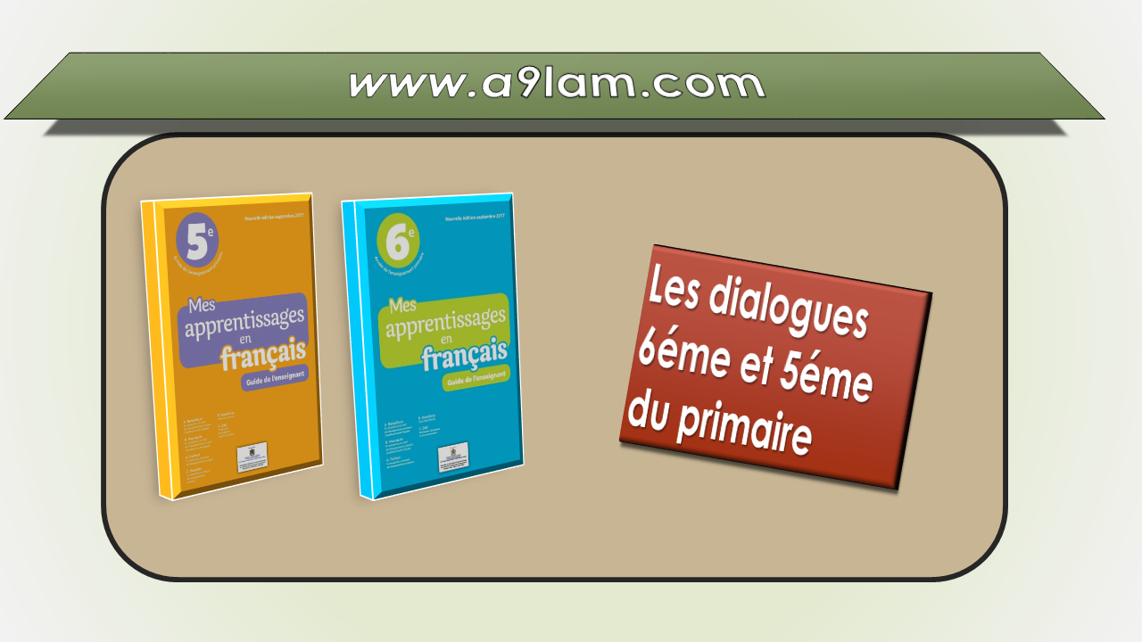 Home » Les dialogues 6éme et 5éme du primaire (communication et actes de langages )Les dialogues 6éme et 5éme du primaire (communication et actes de langages )by web نقدم لكم أنشطة التعبير الشفوية الخاصة باللغة الفرنسية للمستويين الخامس و السادس إبتدائي من إنجاز الاستاذ بدر الريمش Les dialogues 6éme et 5éme du primaire (communication et actes de langages ) التحميل من هنا Advertisements previousمخرجات لقاء الوزارة بالنقابات التعليمية حول الحركات الإنتقالية – 8 أكتوبر 2018nextجميع دلائل الأستاذ لجميع المستويات اللغة الأمازيغية