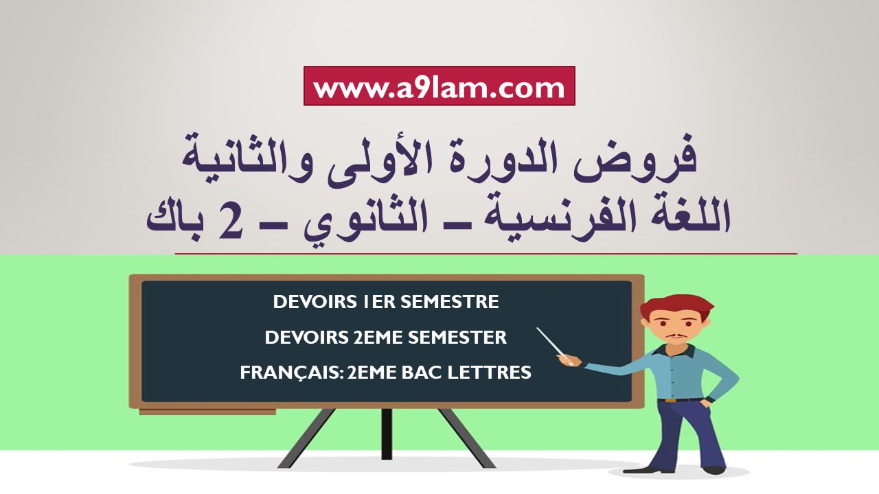 السلام عليكم نسعى في أقلام تربوية أن كون دائما في خدمة الزوار الأعزاء من أساتذة وتلاميذ عبر توفيرمجموعة من المواضيع الهادفة والمفيدة. نقدم لكم في هذا الموضوع مجموعة من الفروض الخاصة باللغة الفرنسية للسنة الثانية بكالوريا.