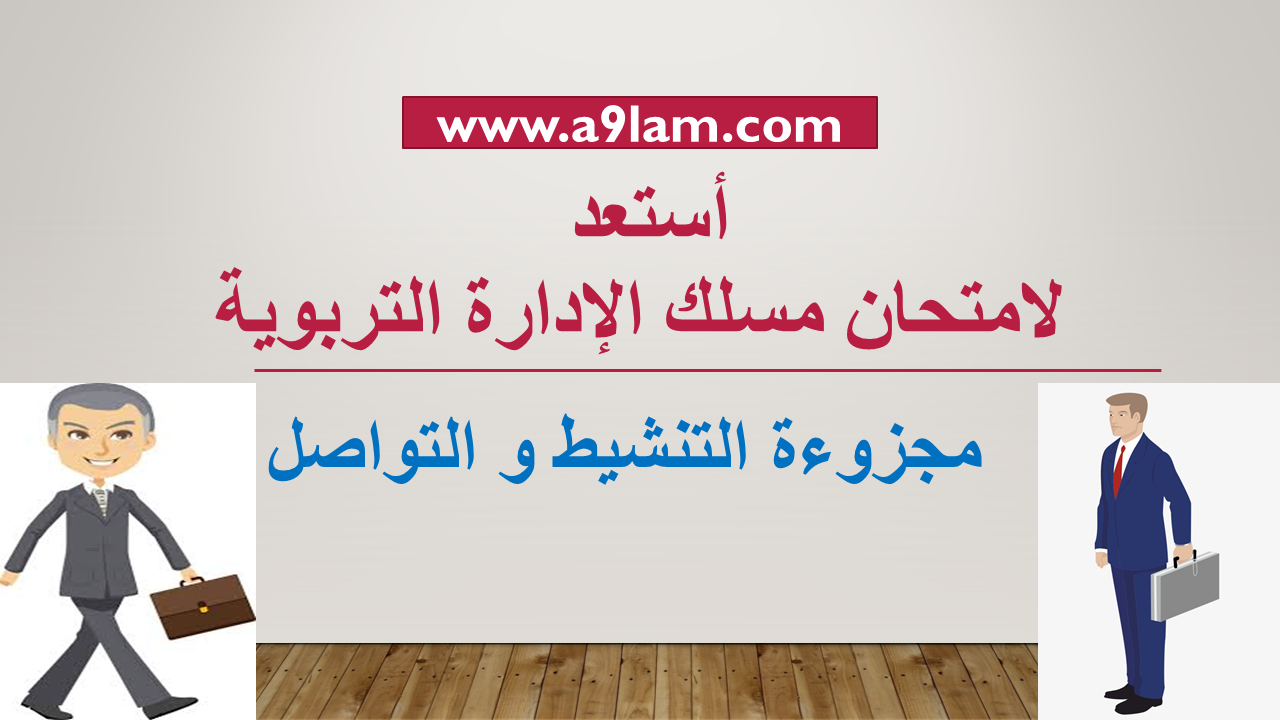 نقدم لحضراتكم المجزوءة الخاصة بالتواصل والتنشيط وتضم مواضيع متنوعة : أنواع التواصل, اليات التواصل والتكوين, التحفيز, أدوات تقويم التواصل, مخطط تواصلي, شبكة تقييم التواصل, والكثير الكثير من المواضيع المتعلقة بالتواصل والتنشيط وعلاقتهما بميدان ممارسة مهن الاداراة التربوية .
