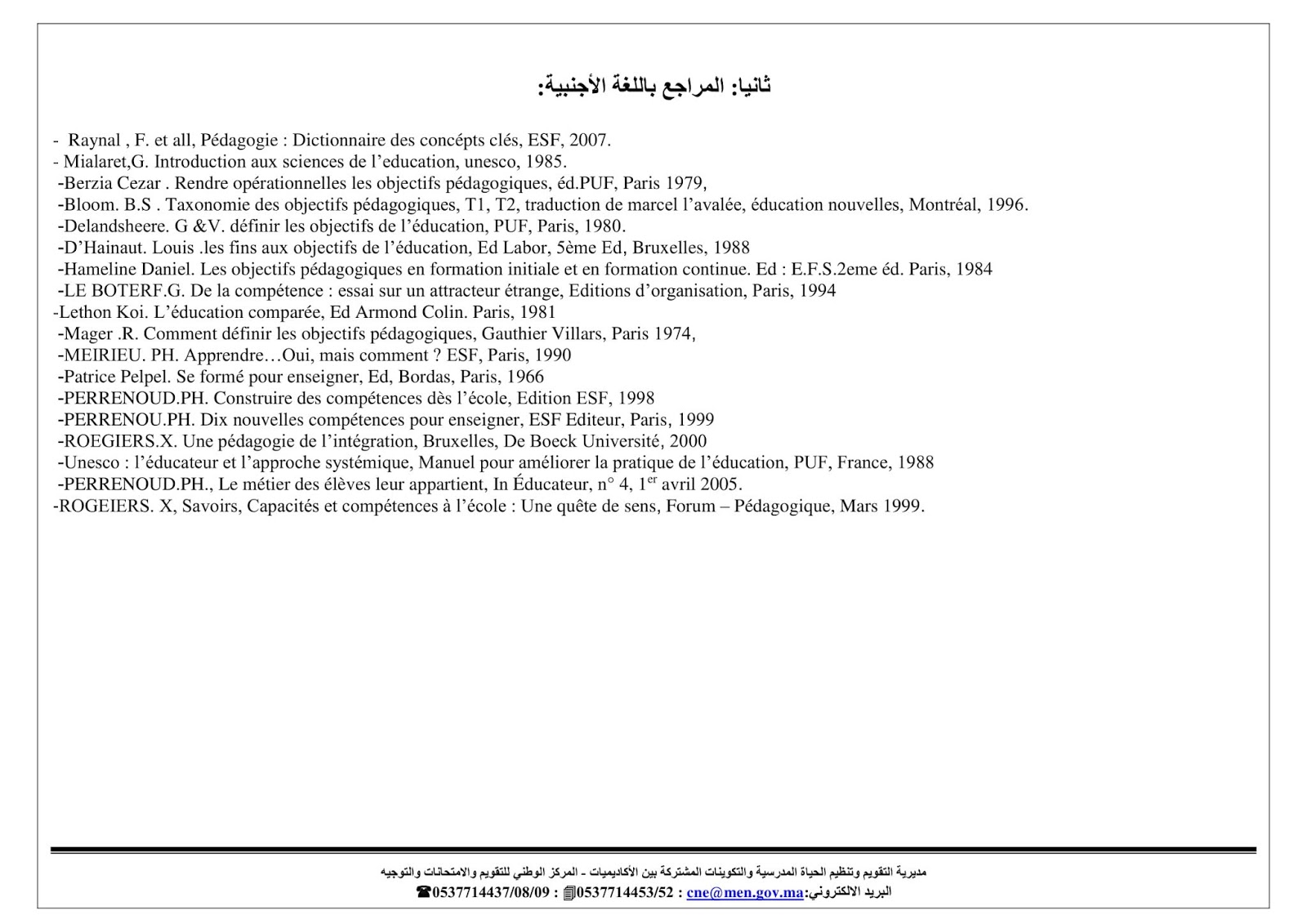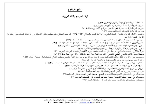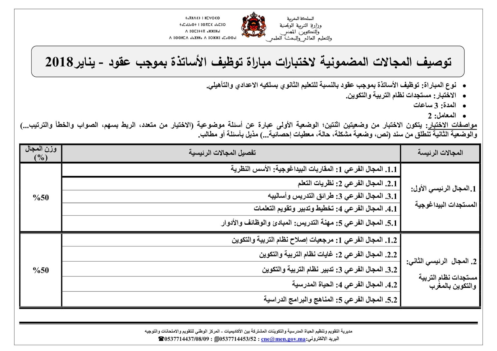 توصيفات الاختبارات لمباراة التعاقد دورة 2018-2019
