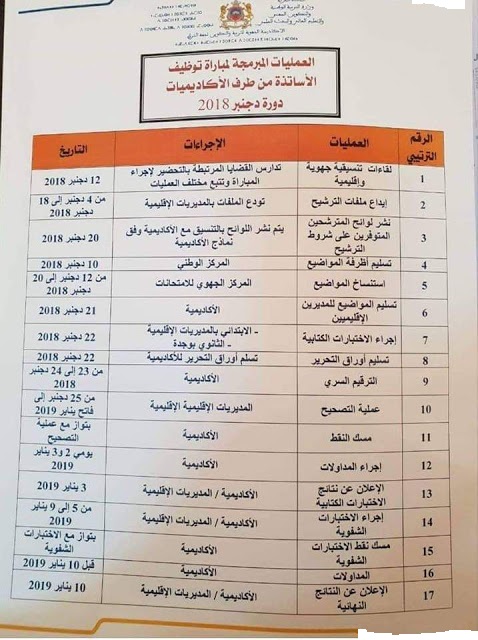 حسب منشور تابع للأكاديمية الجهوية للتربية والتكوين لجهة الشرق فيما يلي مختلف التواريخ المرتبطة بمباراة التوظيف بالتعاقد 2018.
