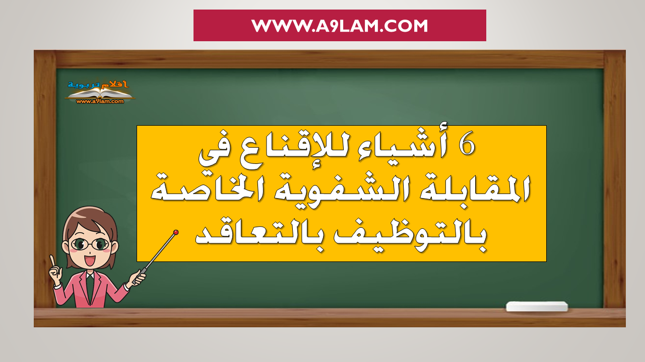 أعلنت الأكاديميات الجهوية للتربية والتكوين عن النتائج الكتابية الخاصة بمباراة التعاقددورة دجنبر 2018 لتنطلق الاستعدادات من أجل اجتياز المقابلة الشفوية في هذا الفيديو 6 خطوات مهمة من أجل النجاح في المقابلة الشفوية.