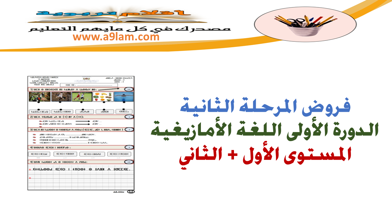 السلام عليكم يقدم لكم موقعكم أقلام فروض اللغة الأمازيغية الخاصة بالمرحلة الثانية الدورة الاولى.