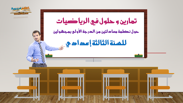 يقدم لكم طاقم أقلام تربوية تمارين تطبيقية مرفقة بالحل حول درس مادة الرياضيات نظمة معادلتين من الدرجة الأولى بمجهولين لتلاميذ السنة الثالثة إعدادي، هذه التمارين المرفقة بالتصحيح ستساعد تلاميذ السنة الثالثة من التعليم الثانوي الإعدادي على التطبيق العملي لدرس مادة الرياضيات نظمة معادلتين من الدرجة الأولى بمجهولين.