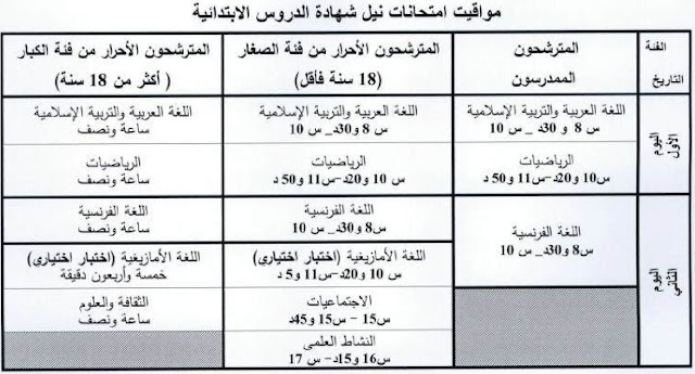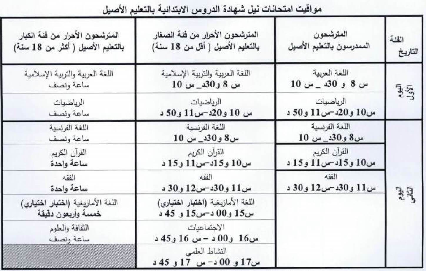 اختبارات الامتحان الموحد الإقليمي لنيل شهادة الدروس الابتدائية ابتداء من يوم 21 يونيو 2019