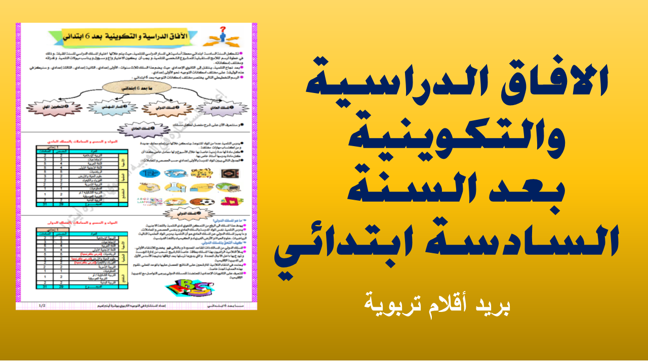 الافاق الدراسية والتكوينية بعد السنة السادسة ابتدائي
