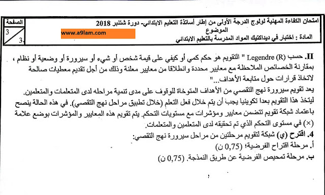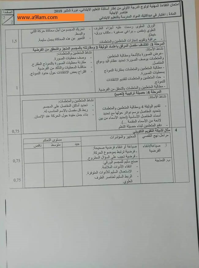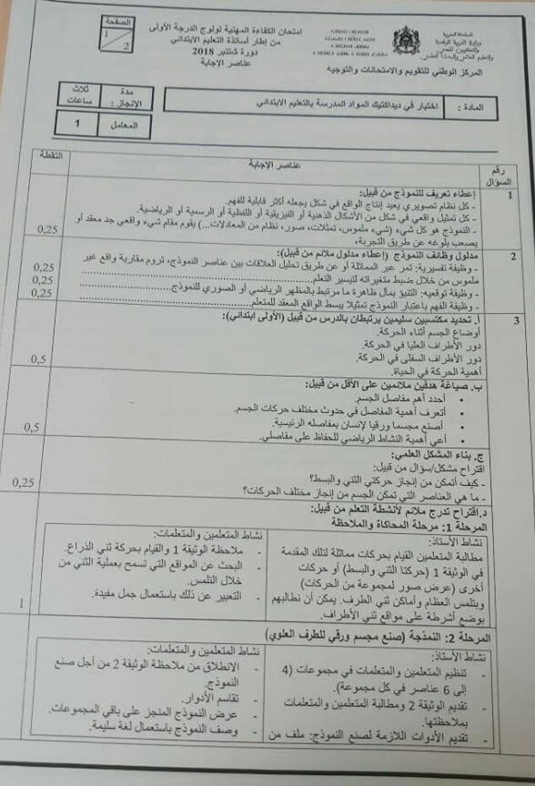 تصحيح ديداكتيك النشاط العلمي للدرجة الأولى للتعليم الابتدائي دورة 2018 (الامتحان المهني )