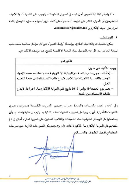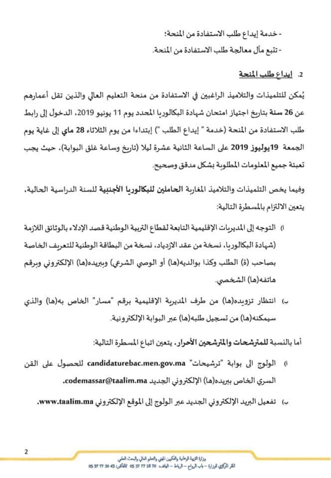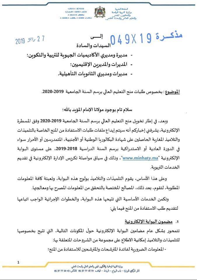 Home » بخصوص طلبات منح التعليم العالي برسم الموسم الجامعي 2019-2020 – مذكرة وزارية