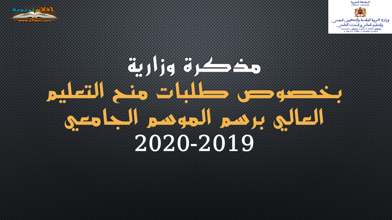 بخصوص طلبات منح التعليم العالي برسم الموسم الجامعي 2019-2020 – مذكرة وزارية