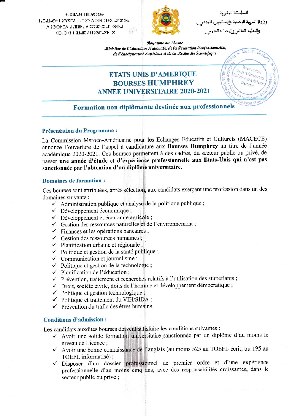 مضمون المنحة: منح لمدة سنة واحدة، للدراسة أو التدريب، لا تتوج بالحصول على شهادة جامعية.