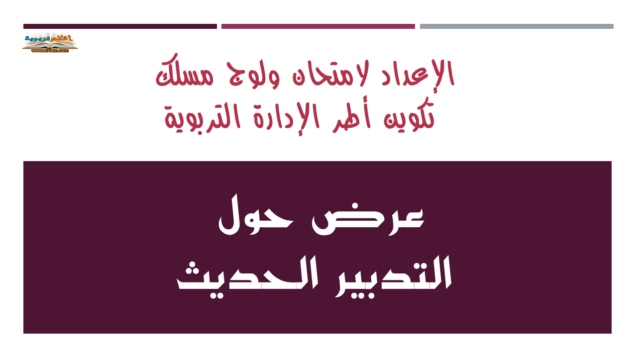 متابعينا الأعزاء في إطار الاستعداد لمباراة ولوج مسلك الإدارة التربوية يقدم لكم طاقم أقلام تربوية عرض حول التدبير الحديث تيسيرا للبحث و اختصارا للجهد ثم للاعداد الجيد للمباراة