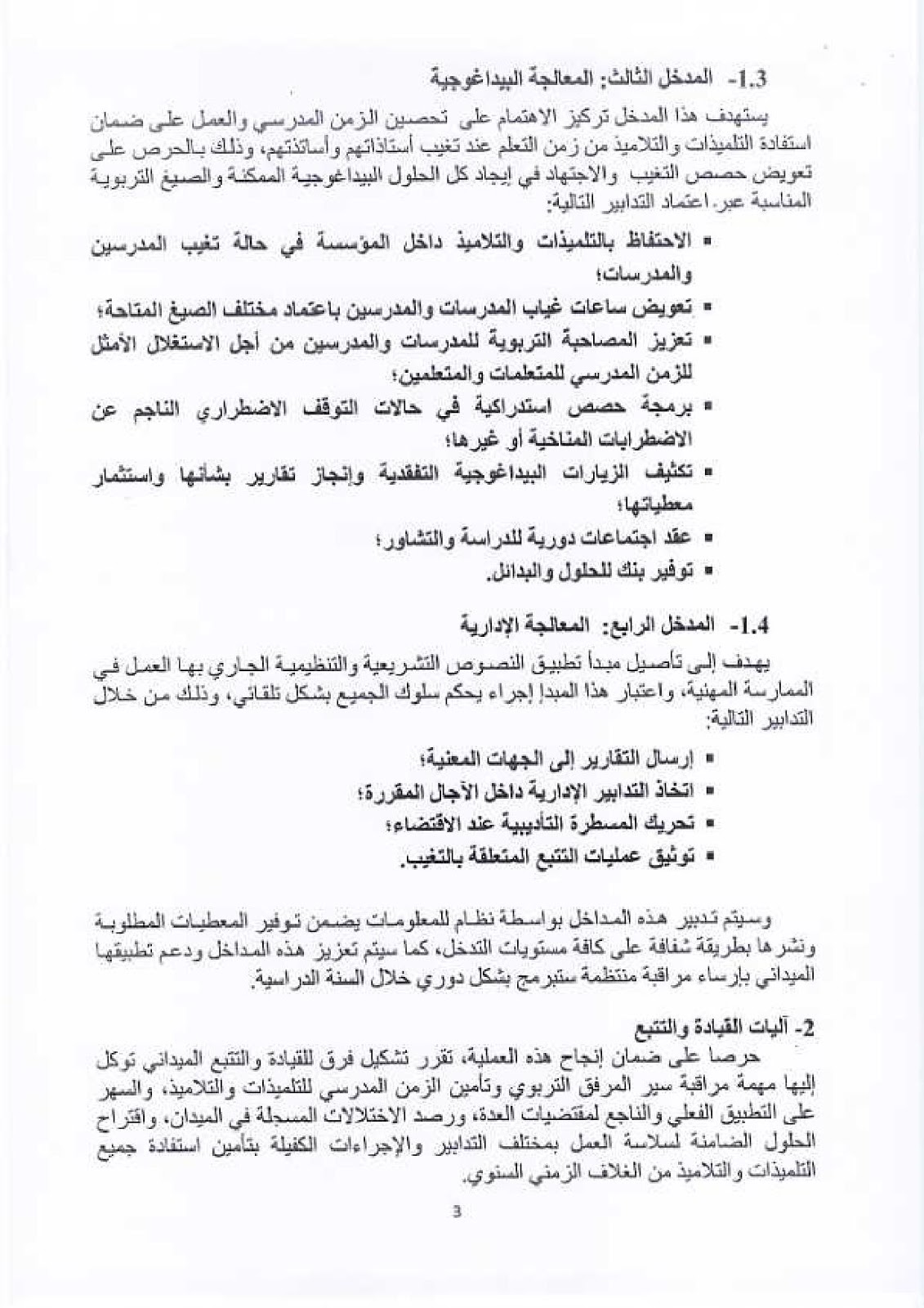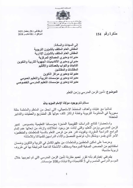 Home » مذكرة وزارية : ممنوع إخراج التلاميذ من القسم بعد تأخر الأستاذ ب 15 دقيقيةمذكرة وزارية : ممنوع إخراج التلاميذ من القسم بعد تأخر الأستاذ ب 15 دقيقيةby Mohamed khan في إطار الوثائق التي يوفرها موقع أقلام تروية لزواره الكرام, نقدم لكم مذكرة وزارية : خاصة بتأمين الزمن المدرسي وتدعو إلى عدم إخراج التلاميذ من القسم بعد تأخر الأستاذ ب 15 دقيقية. تحميل المذكرة بصيغة pdf يمكن الاطلاع على نموذج لتقرير حول سلوك التلميذ – قابل للتعديل لماذا ينبغي تفادي العقاب البدني للتلاميذ؟ أخطاء إدارية وتربوية ينبغي تجنبها علاج صعوبة الانتباه عن التلاميذ Advertisements previousتفتيش خدمة جديدة في منظومة مسارnextجذاذات في رحاب الاجتماعيات حسب المنهاج الجديد – المستوى الرابع