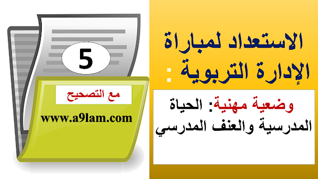 السلام عليكم و رحمة الله و بركاته في إطار المواضيع التي يقدمها موقع أقلام تربوية من أجل الإستعداد لمباراة مسلك الإدارة التربوية, نقدم لحضراتكم , نموذج لوضعية مهنية 5 مع التصحيح حول موضوع الحياة المدرسية والعنف المدرسي ولا تنسوا مشاركتها لتعم الفائدة.