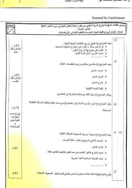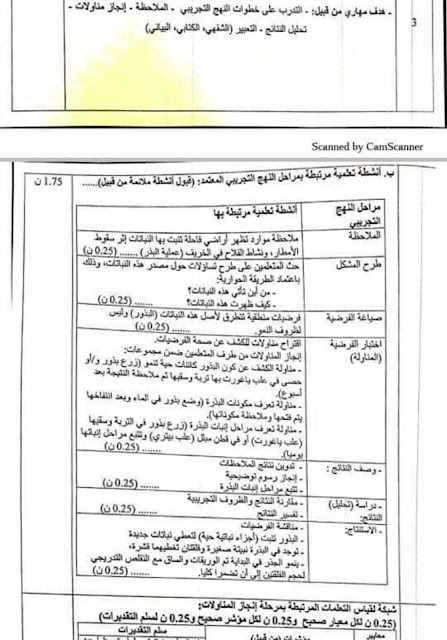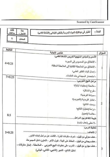 تصحيح ديداكتيك النشاط العلمي للدرجة الأولى للتعليم الابتدائي دورة 2018 (الامتحان المهني )