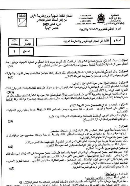 تصحيح الامتحان المهني شتنير 2019 – السلك الابتدائي