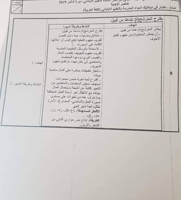 تصحيح ديداكتيك اللغة العربية للدرجة الأولى للتعليم الابتدائي دورة 2018 (الامتحان المهني )