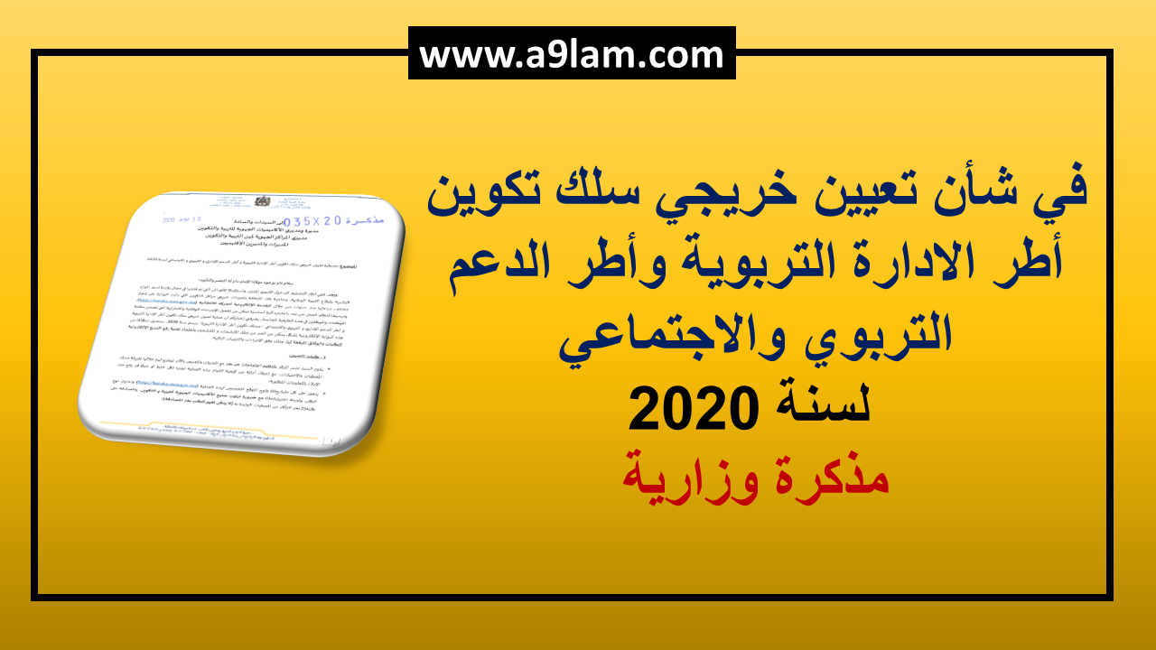 Home » مسطرة تعيين خريجي سلك تكوين أطر الادارة التربوية وأطر الدعم التربوي والاجتماعي لسنة 2020مسطرة تعيين خريجي سلك تكوين أطر الادارة التربوية وأطر الدعم التربوي والاجتماعي لسنة 2020by Mohamed khan مذكرة 035-20 بتاريخ 30 يونيو 2020 في شأن مسطرة تعيين خريجي سلك تكوين أطر الإدارة التربوية وأطر الدعم الإداري والتربوي والإجتماعي لسنة 2020. المطالعة والتحميل Advertisements previousأمزازي : 80 % من مؤسسات التعليم الخاص هي مقاولات متوسطة أو صغيرة ولا يمكن اجبارها على تخفيض الرسوم أوعدمهnextمستجدات المنهاج الدراسي للتعليم الابتدائي اللغة العربية الخامس والسادس ابتدائي 2020-2021