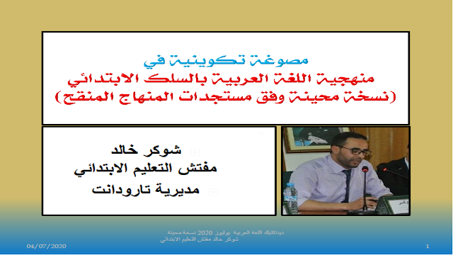 Home » ديداكتيك اللغة العربية بالسلك الابتدائي نسخة محينة وفق المنهاج المنقح – يوليوز 2020 – ذ.شوكر خالدديداكتيك اللغة العربية بالسلك الابتدائي نسخة محينة وفق المنهاج المنقح – يوليوز 2020 – ذ.شوكر خالدby Mohamed khan منهجية اللغة العربية بالسلك الابتدائي نسخة محينة وفق مستجدات المنهاج المنقح للأستاذ شوكر خالد على شكل Pdf. تحميل العرض مواضيع أخرى قد تهمك كتاب الديداكتيك مفاهيم ومقاربات – كتاب على شكل pdf تصحيح الامتحان المهني شتنبر 2018 تصحيح الامتحان المهني – ديداكتيك الرياضيات 2018 مواضيع الامتحان المهني لولوج الدرجة الأولى دورة شتنبر 2018 تصحيح الامتحان المهني – ديداكتيك الرياضيات 2018 هذا ما يجب التركيز عليه للاستعداد للامتحان المهني -تدرج بناءالمفهوم في النشاط العلمي لجميع المستويات المنهاج الدراسي المنقح الخاص بالسنوات 1-2-3-4 ابتدائي مارس 2019 مراحل نهج التقصي في النشاط العلمي أستعد للامتحان المهني : الخطوات المنهجية لتدريس النشاط العلمي Advertisements previousالنقابات التعليمية تتوحد حول مطلب إعادة النظر في تاريخ وحضورية محاضر الخروجnextالطرق الرسمية للاطلاع على نتائج البكالوريا 2020 – لجميع المترشحين