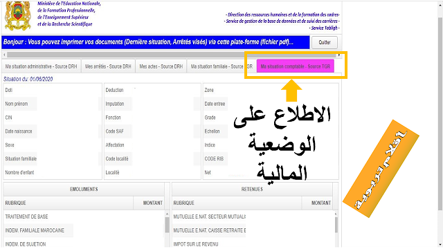 هي خدمة أطلقتها وزارة رة التربية الوطنية , وتمكن الموظفين من الاطلاع على الوضعية الإدارية والمالية , كما بإمكان السادة الأساتذة تحميل وطباعة آخر وضعية إدارية ، وقرارات الترقية في الدرجة والرتبة ، وتحمل هذه المستندات طابع مديرية الموارد البشرية وتكوين الأطر.