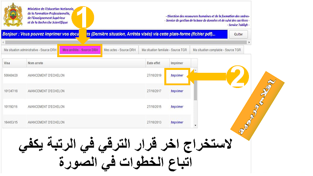الان نترككم مع الصور لشرح كيفية كيفية الحصول على اخر وضعية إدارية و اخر نسخة من قرار الترقي في الرتبة شرح بالصور.